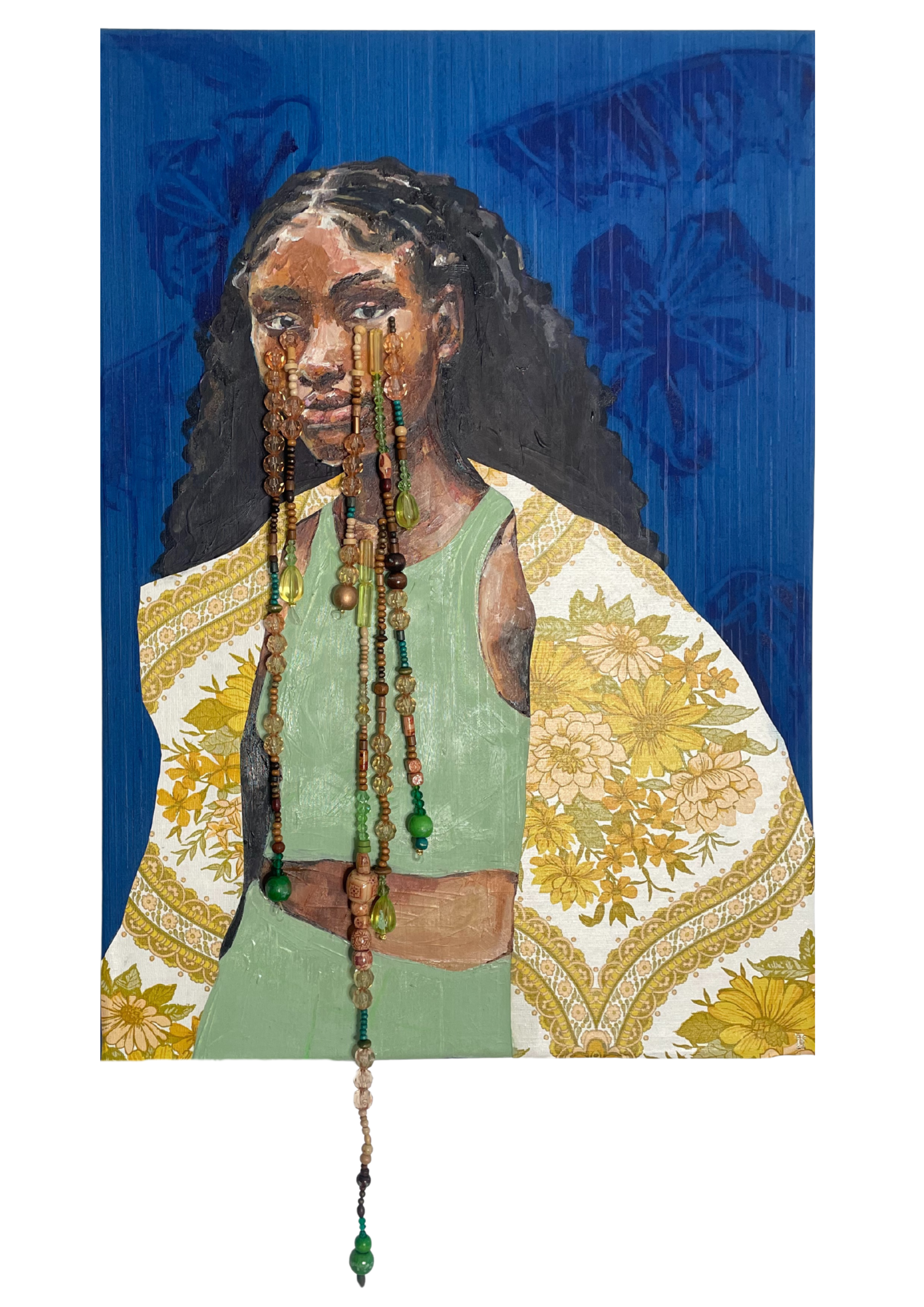 Yvadney Davis is Caribbean British contemporary figurative artist from South London. Her work is a love letter to the Windrush Generation of her grandparents and its descendants, combining a love of painting with iconic design elements of the 'West Indian front room' to explore memory, belonging and identity.